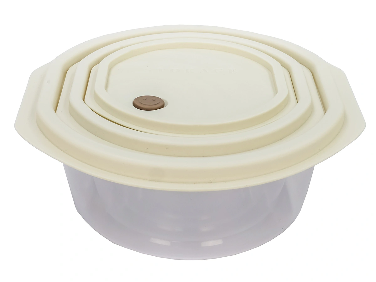 Продуманный дизайн позволяет рационально использовать место для хранения контейнеров. Емкости легко складываются друг в друга и оснащены крышками. В сложенном состоянии контейнеры для хранения занимают совсем немного места и не нарушат порядок среди кулинарных принадлежностей.