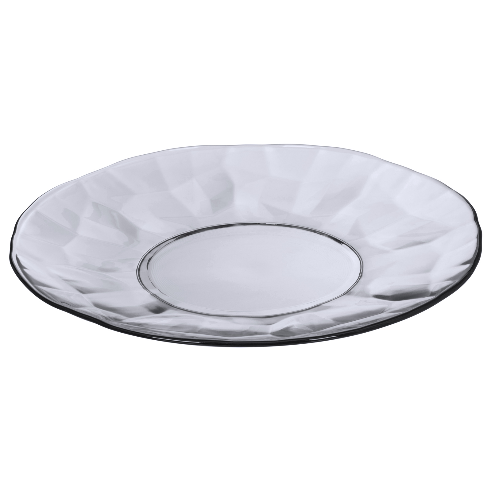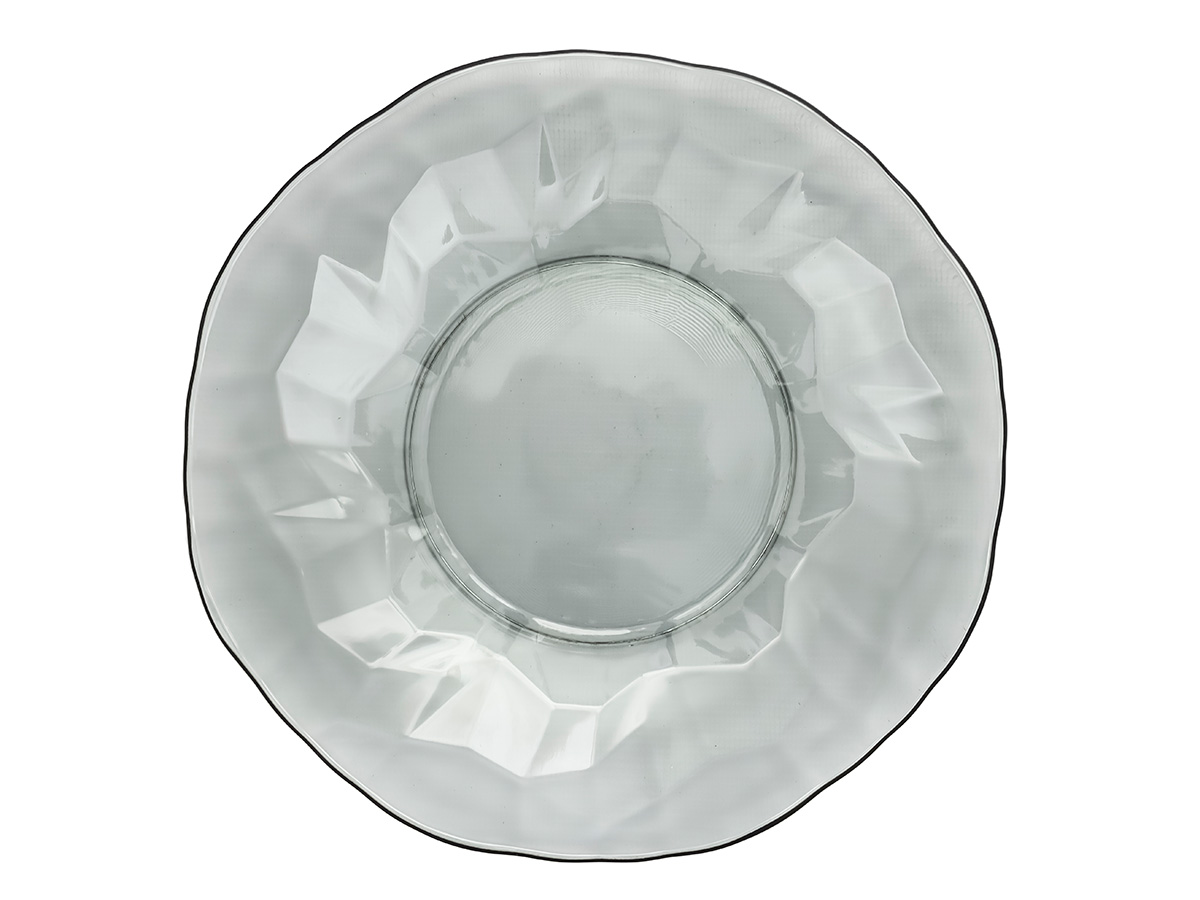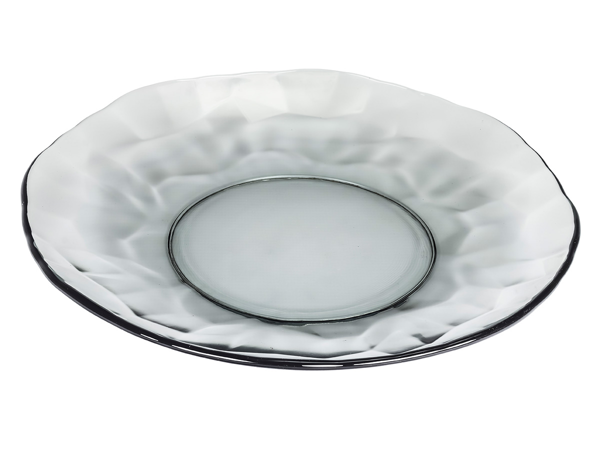 Круглая плоская стеклянная тарелка Black Diamond диаметром 23 см – это стильный и функциональный элемент посуды.
