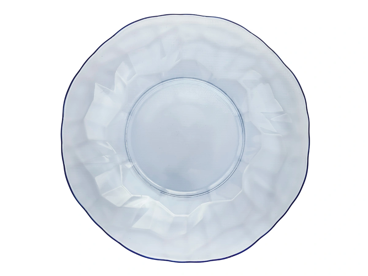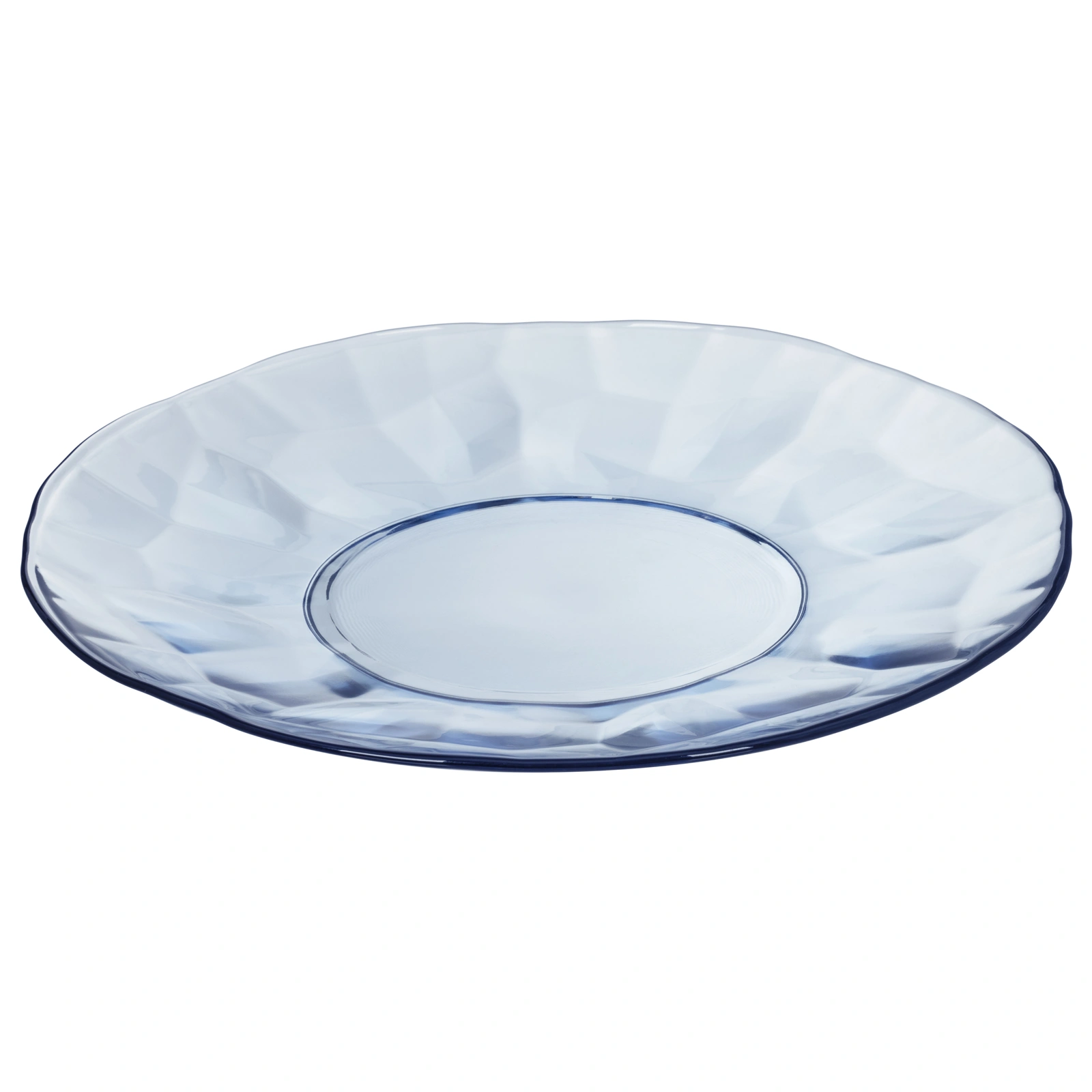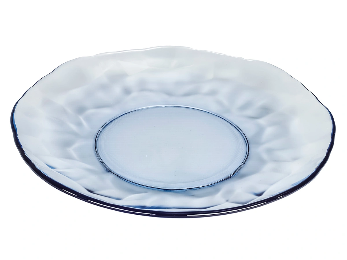 Тарелка изготовлена из высококачественного стекла, которое обеспечивает прочность и долговечность. Благородный синий цвет придаёт ей изысканность и элегантность, а плоская форма позволяет использовать тарелку для различных целей.