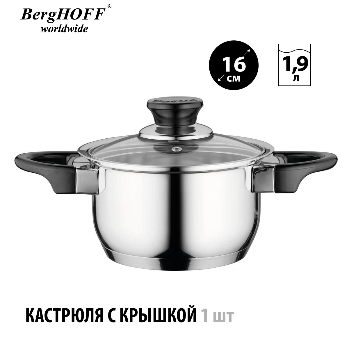 1x кастрюля с крышкой 16 см 1,9 л