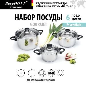 Набор посуды BergHOFF Gourmet, нержавеющая сталь, 6 предметов