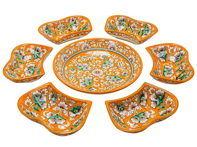 Набор салатников "Риштанская керамика", Оранжевый, 7 предметов