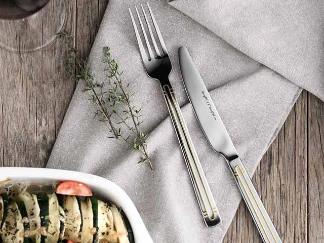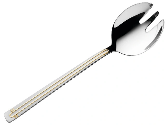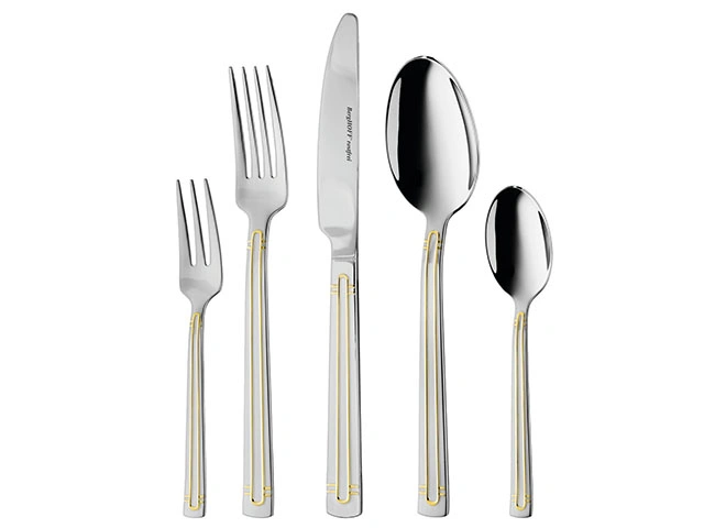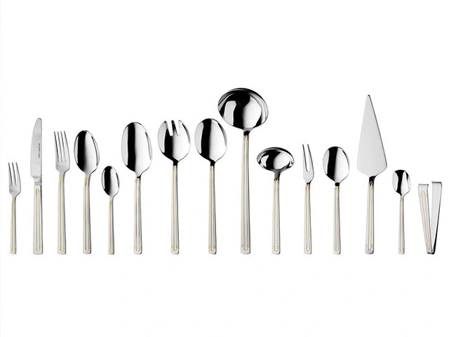 Сияйте, как звезда, доставая столовые приборы Heritage на обеденный стол! Эти столовые приборы демонстрирует потрясающие детали и украшены линиями золотого цвета на лицевой и оборотной стороне ручки, которые сразу же придают обеденному столу изысканный вид и ощущение. Прямоугольная поверхность ручек создает гармоничный баланс с изогнутыми краями столовых приборов. Сочетая изящные очертания и легкий удобный захват, дизайнер Ральф Крамер создает элегантность, которая превращает этот комплект в драгоценный камень, неподвластный времени.