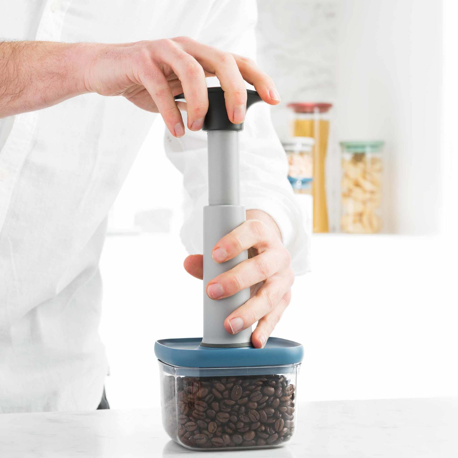 Получите удовольствие от использования этого набора из 4 вакуумных пищевых контейнеров! Практичные и составляемые друг на друга пищевые контейнеры помогут вам сохранить все виды продуктов свежими и вкусными. Независимо от того, наполняете ли вы их супом, домашним печеньем или кофейными зернами, удобный вакуумный насос легко герметизирует контейнеры для максимальной свежести и оптимального сохранения этих восхитительных вкусов и ароматов.