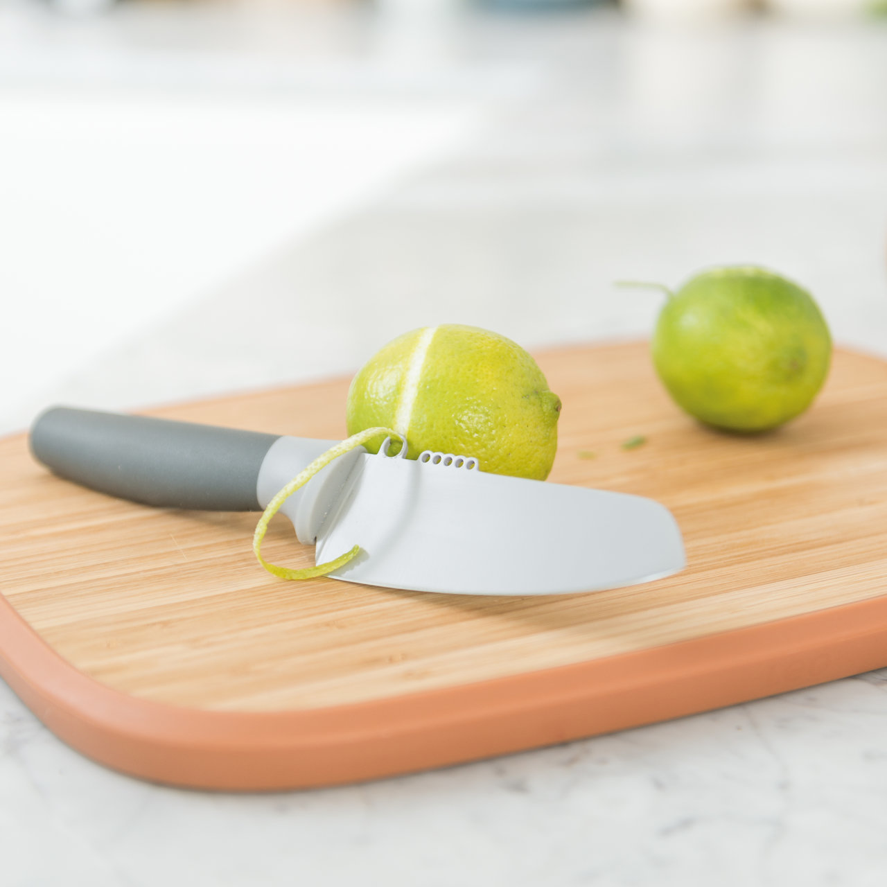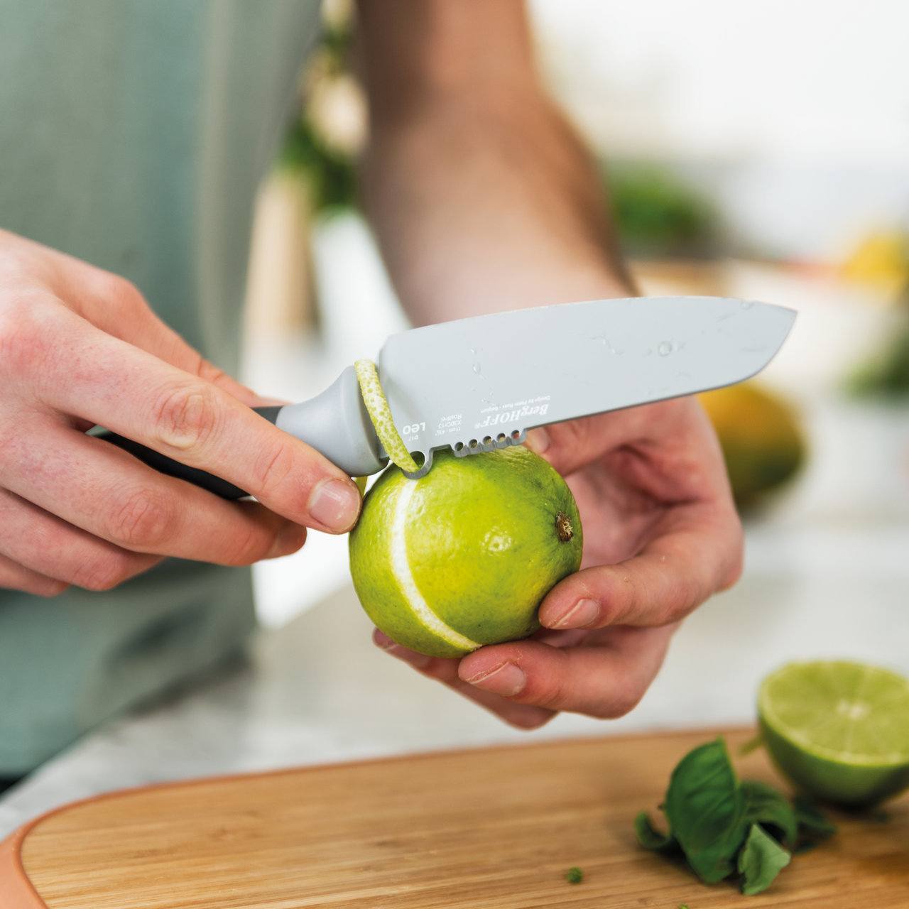 "Вегетарианская закуска, сытный суп или летний салат, с овощным ножом Leo приготовить всё это проще простого, ведь он отлично рубит, режет дольками или кубиками. Лезвие из нержавеющей стали со специальным покрытием от налипания скользит сквозь овощи, как сквозь масло, в то время как мягкая на ощупь ручка обеспечит вам удобный захват. Дополнительным бонусом является встроенный нож для цедры, который поможет придать блюдам дополнительный цитрусовый штрих.