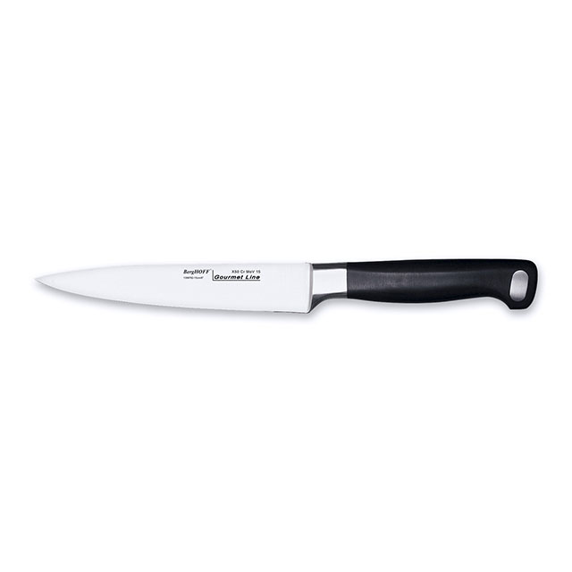 Универсальный нож подходит для любых нарезочных работ, требующих точности. Он применим практически при всех кухонных операциях, незаменимый инструмент в арсенале кулинара. Корпус ножа сделан из единого куска твердой стали, устойчив к появлению коррозии и пятен. Заточенное вручную лезвие долго сохраняет свою остроту. Универсальный нож Gourmet – один из ножей в ассортименте европейского бренда BergHOFF. Изучите весь каталог кухонного инвентаря и соберите для себя идеальный поварской арсенал.