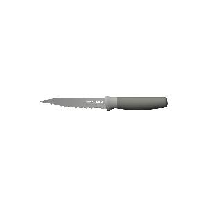"Этот зазубренный нож Leo идеально подходит для широкого спектра работ. Зубчатое лезвие со специальным покрытием от налипания без проблем разрежет колбаски, фруктовую шкурку или нежные овощи, не раздавливая более мягкую внутреннюю часть. Лезвие ножа обладает заводской заточкой, а значит сразу готово к работе. Рукоятка ножа имеет эргономичную форму, благодаря чему комфортно ложится в руку, обеспечивая надежный захват; покрыта пластиком, не скользит, так что пользоваться таким ножом безопасно.