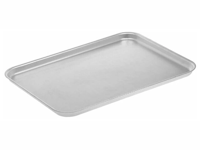 Противень из пищевого алюминия предназначен для использования в кафе и ресторанах или на домашней кухне. Быстро и равномерно нагревается, поверхность противня обработана методом матовой полировки, так она лучше переносит контакт с металлическими кухонными аксессуарами и мочалками, абразивными моющими средствами — мелкие царапины на ней незаметны.