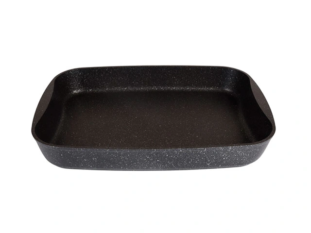 Противень из литого алюминия покрыт высококачественным антипригарным напылением на водной основе, усиленным мраморными частицами. Усиленная грунтовка и дополнительный слой для лучшего сцепления делают покрытие чрезвычайно прочным и долговечным. Покрытие посуды Kukmara не содержит PFOA – компонентов, при нагревании выделяющих токсичные вещества. Она экологична и безвредна для здоровья. Посуду из этой серии можно мыть в посудомоечной машине, а вот жесткие металлические мочалки использовать не следует.