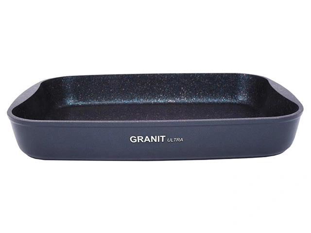Противень из литого алюминия покрыт высококачественным антипригарным напылением на водной основе, усиленным гранитными частицами. Усиленная грунтовка и дополнительный слой для лучшего сцепления делают покрытие чрезвычайно стойким и долговечным. Покрытие Granit Ultra самое прочное в линейке посуды Kukmara. Оно не содержит PFOA – компонентов, при нагревании выделяющих токсичные вещества, и безвредно для здоровья. Посуду из этой серии можно мыть в посудомоечной машине, а вот жесткие металлические мочалки использовать не следует.