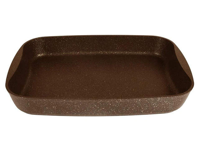 Противень из литого алюминия покрыт высококачественным антипригарным напылением на водной основе, усиленным мраморными частицами. Усиленная грунтовка и дополнительный слой для лучшего сцепления делают покрытие чрезвычайно прочным и долговечным. Покрытие посуды Kukmara не содержит PFOA – компонентов, при нагревании выделяющих токсичные вещества. Она экологична и безвредна для здоровья. Посуду из этой серии можно мыть в посудомоечной машине, а вот жесткие металлические мочалки использовать не следует.