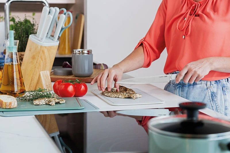 "Ищете нож, который точно нарежет жаркое? Тогда этот нож из нержавеющей стали для вас! Лезвие разделочного ножа имеет бритвенно-острую кромку, которая скользит прямо через мясо и птицу. Кроме того, у вас есть глянцевая ручка, которая обязательно украсит вашу кухню во время ваших кулинарных приключений. Выберите один из двух сочетающихся цветов и украсьте свою кухню этими глянцевыми ножами для отделки.