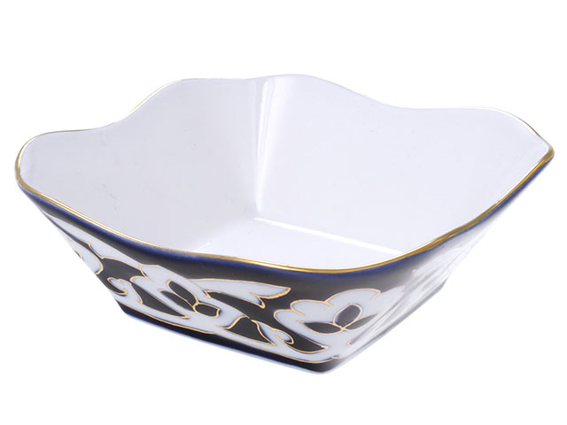 Главный элемент орнамента "пахты" – цветок хлопка. Всем знакомая бело-голубая посуда с позолотой, ставшая символом восточной кухни. Этот фарфор ручной работы узбекских мастеров выглядит очень нарядно и подходит как для праздничного стола, так и для повседневного использования.