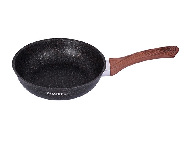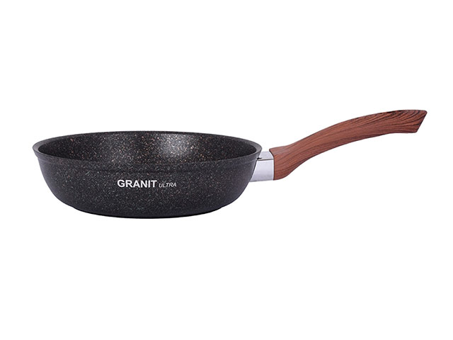 Сковорода из литого алюминия российского бренда Kukmara. Артикул товара сго240а. Диаметр сковороды 24 см, высота 6,5 см, толщина стенок 4,5 мм, вес 1,05 кг. Сковорода покрыта суперстойким антипригарным напылением Granit Ultra. Удобная ненагревающаяся бакелитовая ручка оформлена под натуральное дерево. Купить в Москве сковороду с антипригарным покрытием Kukmara (Granit Ultra Original) сго240а, 24 см, у нас вы можете с гарантией от производителя