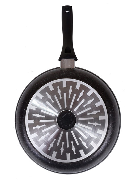 - значительная толщина стенок и дна исключает деформацию корпуса сковороды, гарантирует ее долговечность, обеспечивает необходимую прочность покрытия;