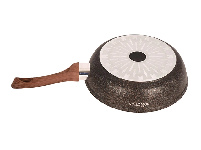 Существенный вес сковороды объясняется тем, что у нее довольно толстые стенки и дно. В такой посуде температура распределяется равномерно, алюминиевый корпус не деформируется. Индукционное дно позволяет готовить быстрее, сохраняя вкус продуктов и полезные вещества в них. Сковороду легко мыть – кстати, делать это можно в посудомоечной машине. Не повредят поверхности сковороды и металлические лопатки. Немецкое антипригарное покрытие настолько прочное, что на нем можно использовать кухонный инвентарь, который другим сковородам строго противопоказан.
