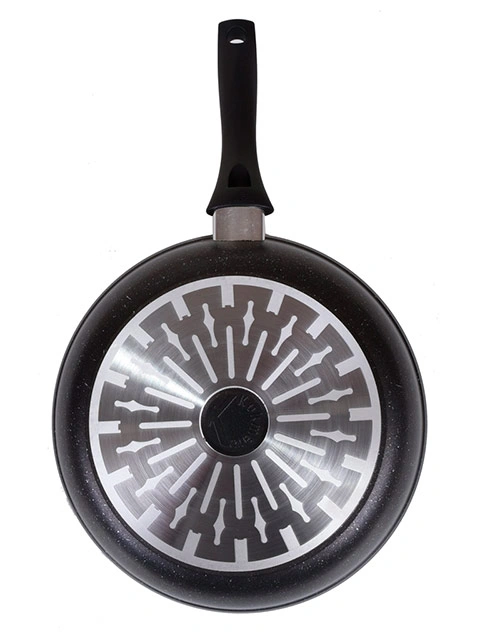 Литая сковорода произведена из пищевого алюминия, вернее, сплава алюминия и кремния, покрытого укрепляющими грунтовками и напылениями. Такое многослойное дно идеально для индукционной плиты. Температура внутри него распределяется оптимальным образом, и еда готовится быстрее. Сковорода, произведенная в России, обработана антипригарным покрытием, сделанным в Германии. Напыление экологично и безопасно, а также чрезвычайно прочно. Оно очень устойчиво к повреждениям, но даже после появления на поверхности посуды царапинок сохраняет свои свойства.