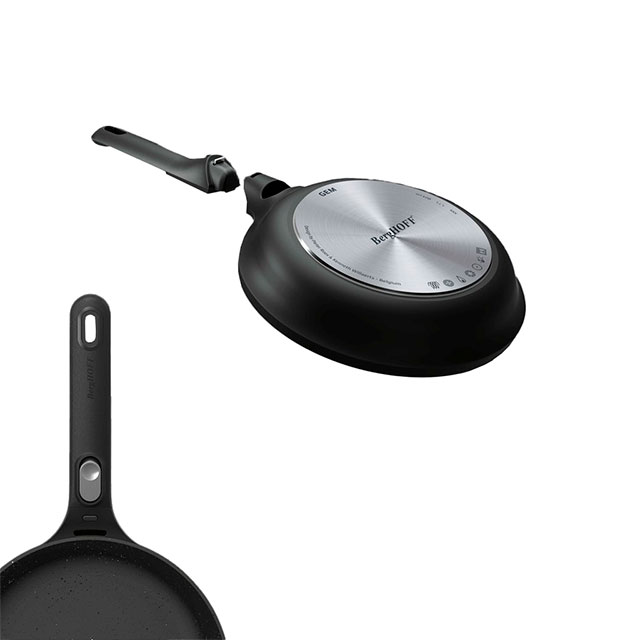 Съёмная ручка позволяет использовать посуду без ручки в духовке, а также поможет сэкономить место при хранении.