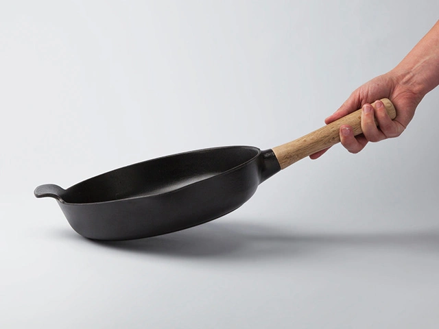 Чугун может справиться с очень высокими температурами, поэтому эти сковороды отлично подходят для интенсивного обжаривания. Ручка из ясеневой древесины имеет удобную форму и приятную для прикосновения поверхность.