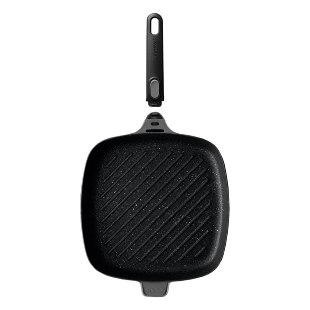 Серия Gem grey — посуда премиального качества. Весь ее внешний вид говорит, что перед нами что-то высокотехнологичное. Снаружи посуда покрыта напылением элегантных оттенков, а внутри — уникальным антипригарным покрытием Ferno Green. Многослойное покрытие не содержит вредных перфтороктановых кислот, кадмия и свинца. Оно идеально гладкое и чрезвычайно прочное. Высокая устойчивость к износу, трению и образованию царапин продлевает срок службы посуды. Дно оптимально для всех видов плит, в том числе индукционных. Ненагревающаяся ручка обеспечивает безопасный и удобный захват. Она съемная, что позволяет использовать посуду в духовке и экономить место при ее хранении.