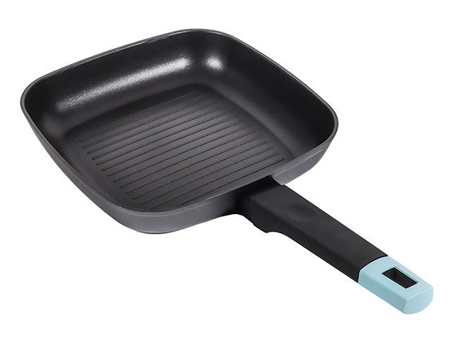 От обычной сковороды сковороду-гриль отличает толстое ребристое дно, благодаря которому жир остается на дне посуды и не пропитывает готовящиеся продукты. Квадратная сковорода считается самой вместительной, на ней удобно размещать куски мяса любой формы. Технология производства этой посуды практически исключает возникновение дефектов на внутренней и наружной поверхностях. Сковорода из кованого алюминия отличается высокой прочностью. В алюминий добавляют кремний, благодаря которому посуда лучше держит тепло. Антипригарное покрытие на кованой поверхности также служит дольше.