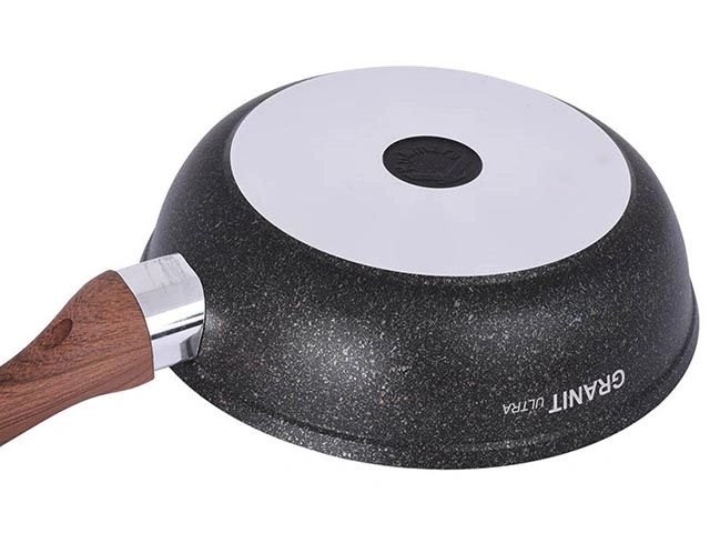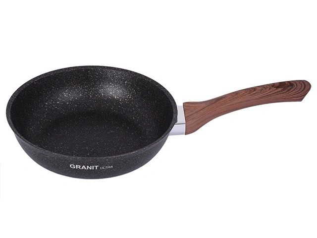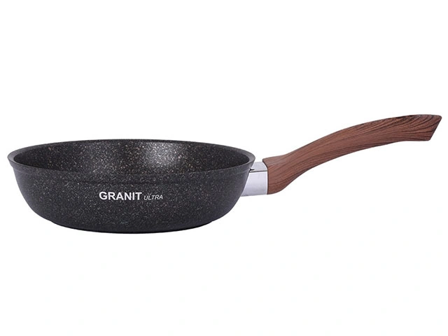 Сковорода из литого алюминия российского бренда Kukmara. Артикул товара сго220а. Диаметр сковороды 22 см, высота 6 см, вес 0,95 кг. Толщина стенок 6 мм, это один из самых толстостенных видов посуды в ассортименте марки Кукмара. Сковорода покрыта суперстойким антипригарным напылением Granit Ultra. Удобная ненагревающаяся бакелитовая ручка оформлена под натуральное дерево. Купить в Москве сковороду с антипригарным покрытием Kukmara (Granit Ultra Original) сго220а, 22 см, у нас вы можете с гарантией от производителя