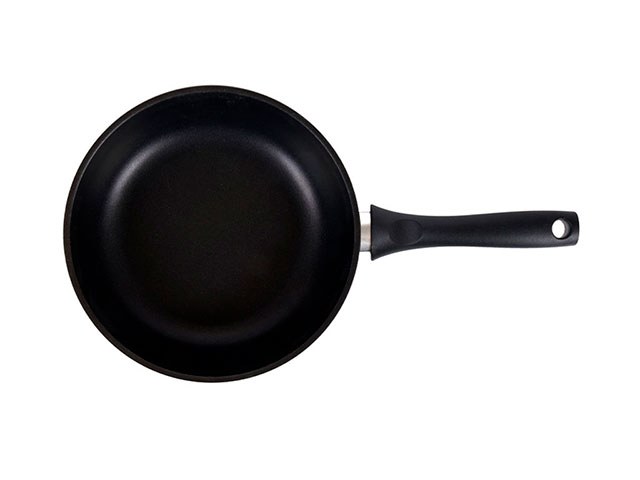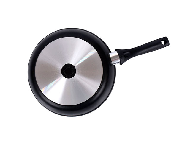Сковорода Kukmara с антипригарным покрытием имеет проточенное дно, которое обеспечивает максимальное прилегание дна посуды к плите для более быстрого и равномерного нагрева.