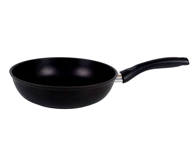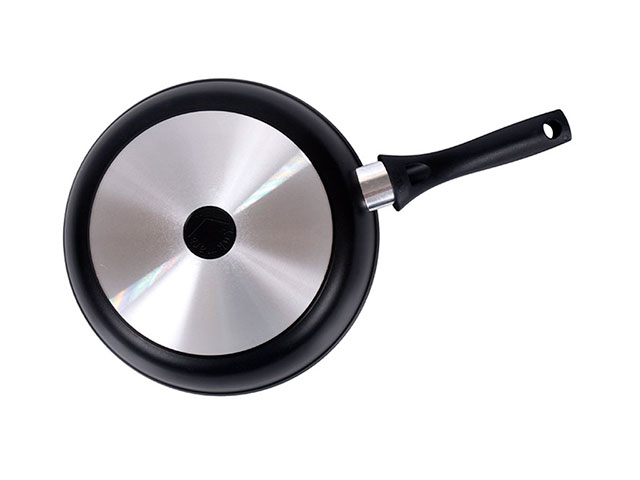 Сковорода Kukmara с антипригарным покрытием имеет проточенное дно, которое обеспечивает максимальное прилегание дна посуды к плите для более быстрого и равномерного нагрева.