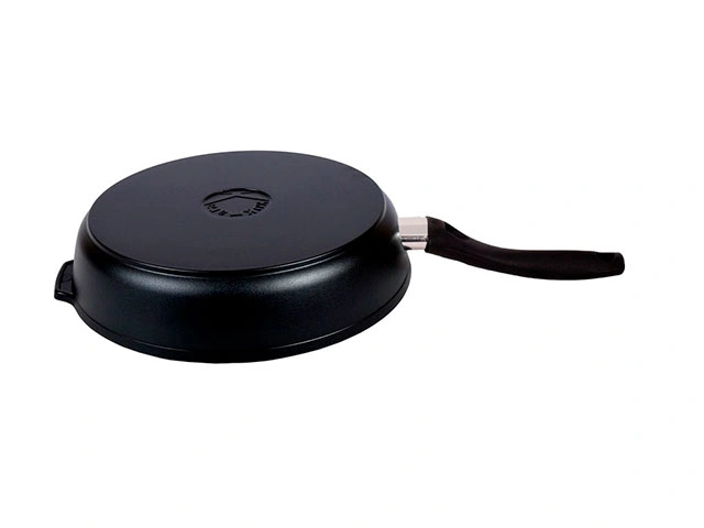 Незаменимая помощница на кухне - классическая сковорода, идеально подходящая и для жарки, и для тушения, а благодаря съемной ручке еще и для запекания в духовом шкафу. Сковорода Kukmara из литого алюминия традиционной формы имеет отличные теплораспределительные и теплоаккумулирующие свойства, и блюда в ней получаются сочными и ароматными. Удобное хранение обеспечивает съемная ручка. Функциональность посуды увеличивает стеклянная крышка из термостойкого стекла, благодаря которой можно наблюдать за приготовлением пищи и не снимать крышку каждый раз, теряя при этом изрядное количество тепла. Стеклянная крышка комплектуется ручкой из нержавеющей стали, благодаря которой допускается использование ее в духовом шкафу вместе со сковородой.