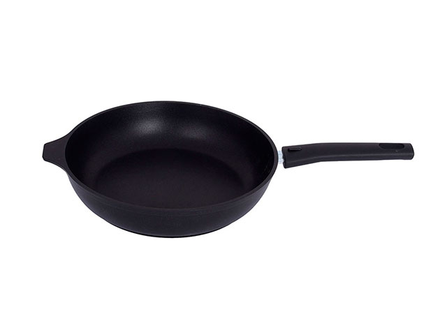Незаменимая помощница на кухне - классическая сковорода, идеально подходящая и для жарки, и для тушения, а благодаря съемной ручке еще и для запекания в духовом шкафу. Сковорода Kukmara из литого алюминия традиционной формы имеет отличные теплораспределительные и теплоаккумулирующие свойства, и блюда в ней получаются сочными и ароматными. Удобное хранение обеспечивает съемная ручка. Функциональность посуды увеличивает стеклянная крышка из термостойкого стекла, благодаря которой можно наблюдать за приготовлением пищи и не снимать крышку каждый раз, теряя при этом изрядное количество тепла. Стеклянная крышка комплектуется ручкой из нержавеющей стали, благодаря которой допускается использование ее в духовом шкафу вместе со сковородой.