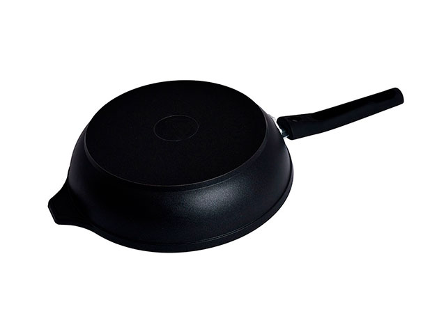 Сковорода Kukmara с антипригарным покрытием имеет проточенное дно, которое обеспечивает максимальное прилегание дна посуды к плите для более быстрого и равномерного нагрева.