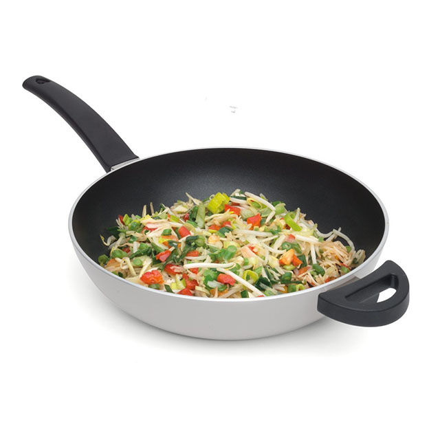 Вок — азиатская сковорода со сферическим дном и высокими тонкими стенками. Он быстро раскаляется и так же быстро отдает тепло. Сферическая форма позволяет создать на поверхности вока сразу несколько температурных режимов: внизу, на самом сильном жаре, готовится мясо, а выше, в менее жаркой зоне, овощи — вок доводит их до готовности, но не пережаривает. Вок BergHOFF Eclipse предназначен для использования на любых типах плит, в том числе индукционных. Многослойное антипригарное покрытие нового поколения, не содержащее вредных веществ, облегчает процесс готовки и ухода за сковородой. Посуду серии BergHOFF Eclipse отличают приятные цвета и современный дизайн.