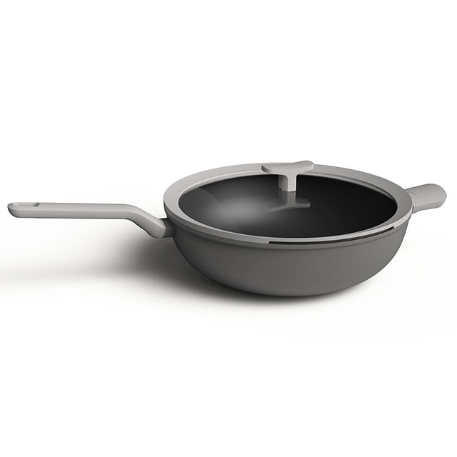 Вок — азиатская сковорода со сферическим дном и высокими стенками. Он быстро раскаляется и так же быстро отдает тепло. Форма позволяет создать на поверхности вока сразу несколько температурных режимов: внизу, на самом сильном жаре, готовится мясо, а выше, в менее жаркой зоне, овощи — вок доводит их до готовности, но не пережаривает. Многослойное антипригарное покрытие позволяет готовить в воке BergHOFF на минимальном количестве масла. Сковорода подходит для всех видов конфорок, в том числе индукционных, а благодаря монолитным ручкам может использоваться в духовке. В комплекте стеклянная крышка с ненагревающимся силиконовым ободком и отверстием для слива жидкости.