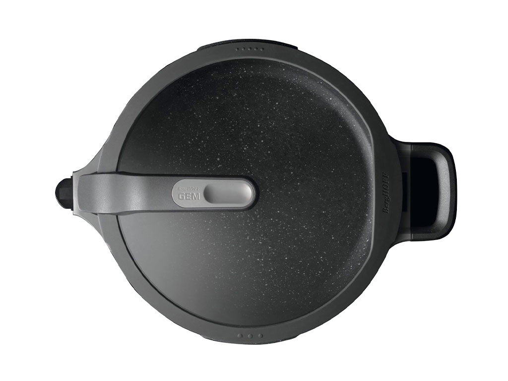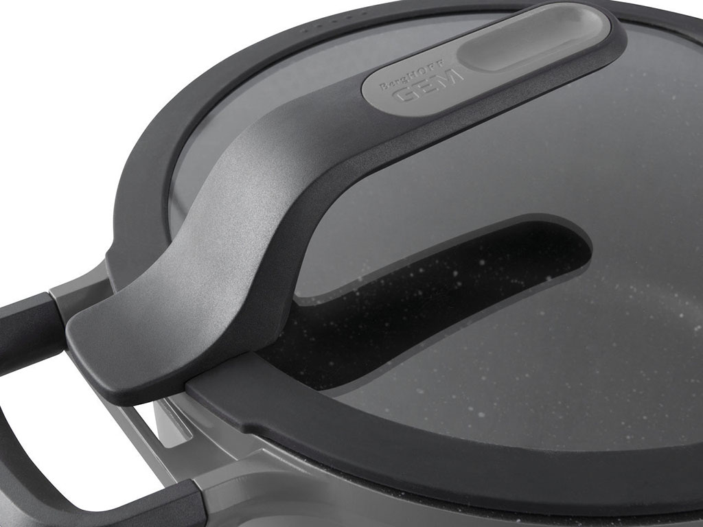 Серия Gem grey — посуда премиального качества. Весь ее внешний вид говорит, что перед нами что-то высокотехнологичное. Снаружи посуда покрыта напылением элегантных оттенков, а внутри — уникальным антипригарным покрытием Ferno Green. Многослойное покрытие не содержит вредных перфтороктановых кислот, кадмия и свинца. Оно идеально гладкое и чрезвычайно прочное. Высокая устойчивость к износу, трению и образованию царапин продлевает срок службы посуды. Дно оптимально для всех видов плит, в том числе индукционных. Стеклянная крышка сотейника с силиконовым ободком оборудована удобной ненагревающейся ручкой, носиком и отверстиями разного диаметра для слива жидкости и выхода пара. Крышку можно установить на корпусе сотейника вертикально, чтобы освободить руки.