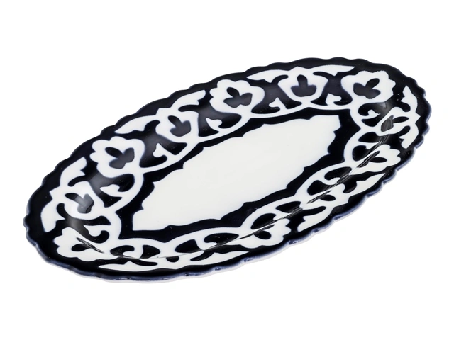 Главный элемент орнамента "пахты" – цветок хлопка. Этот фарфор ручной работы узбекских мастеров выглядит очень нарядно и подходит как для праздничного стола, так и для повседневного использования.