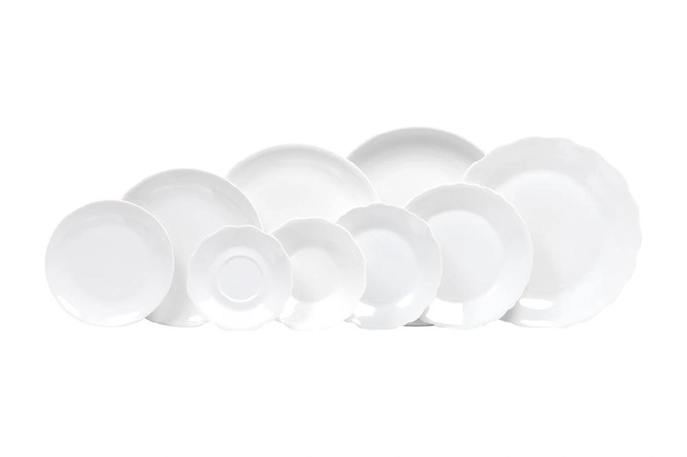 Элегантная белоснежная посуда из коллекции "Зима". Стильные тарелки, удобные блюда и ляганы, функциональные соусники и пиалы отлично смотрятся на праздничном и повседневном столе. Эту фарфоровую посуду можно мыть в посудомоечной машине и ставить в микроволновую печь. Большой ассортимент: из отдельных предметов вы легко сможете составить свой собственный сервиз.