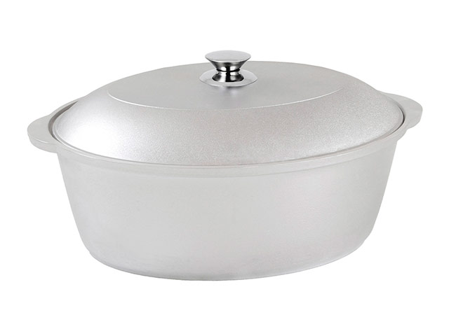 Утятница из литого алюминия, продукция российского производителя посуды Kukmara. Объем 5,5 литра, плоское дно, длина 39,5 см, высота 24 см, толщина стенок 4,5 мм, вес 2,07 кг. В комплекте крышка с металлической ручкой. Артикул товара у55. Купить в Москве утятницу Kukmara у55, 5.5 л, у нас вы можете с гарантией от изготовителя.