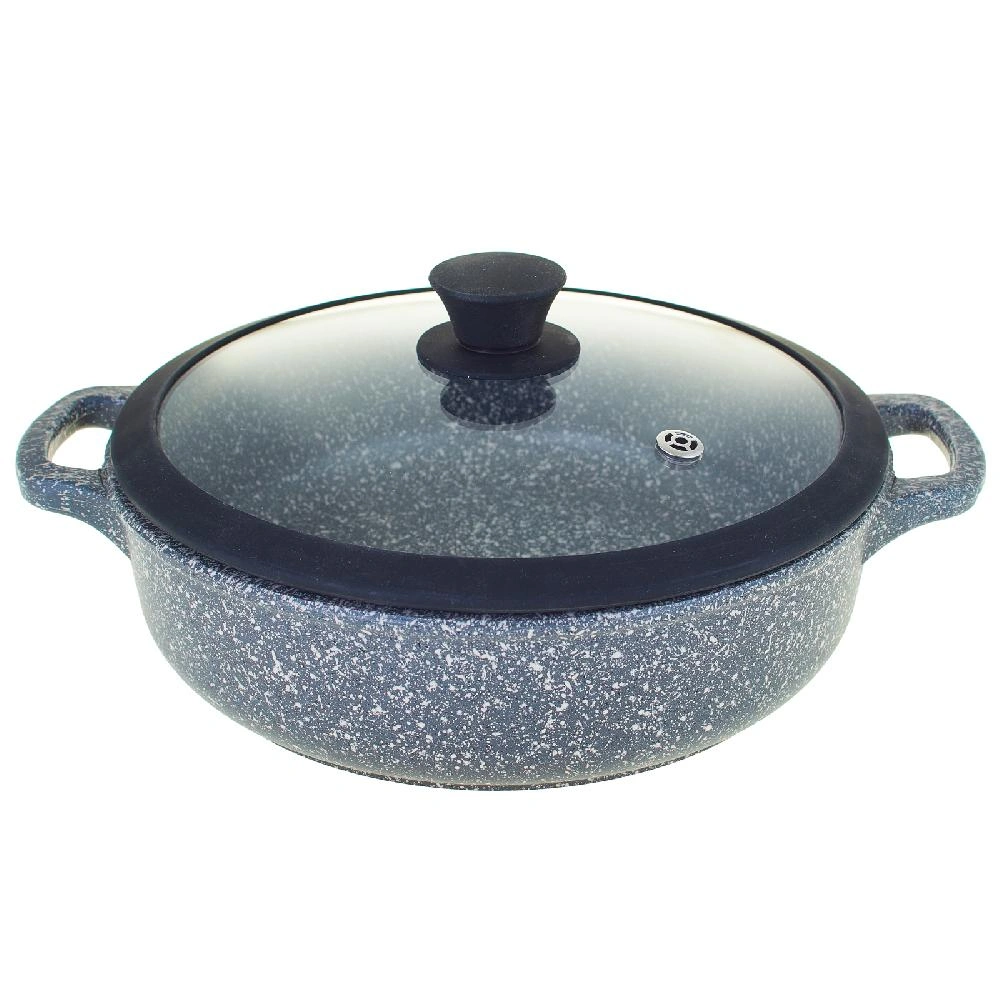 Жаровня литая с антипригарным покрытием ТМ Традиция Мрамор. Посуда предназначена для ежедневного использования в домашних условиях. Исключительная прочность и долговечность антипригарного покрытия, равносильная по стойкости природному камню, разработана специально для интенсивного использования на каждый день. Толстостенный литой корпус. Пятислойная антипригарная система покрытия последнего поколения. Премиальное покрытие усиленное минеральными частицами. Два слоя дополнительной защиты от пригорания. Обладает хорошей антипригарностью для легкого и приятного приготовления здоровых блюд без масла и жира. Не менее 4000 тысяч циклов приготовления, при соблюдении правил эксплуатации. Кастрюли и жаровни ТМ Традиция можно использовать в духовом шкафу без стеклянной крышки. Подходит для любых видов плит, кроме индукционной. Можно мыть в посудомоечной машине.