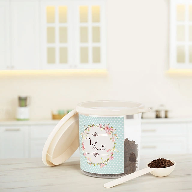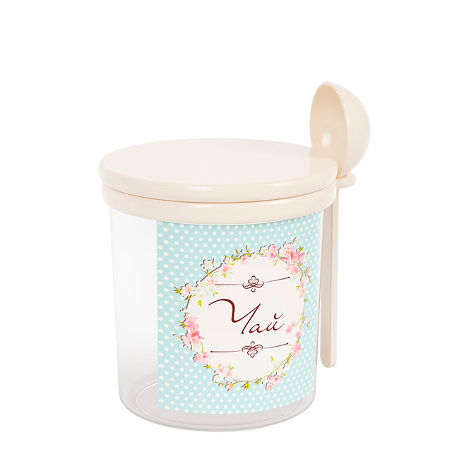 Изделие предназначено для хранения различных сыпучих продуктов: чая, соли, сахара, кофе. Прозрачность ёмкости позволяет видеть содержимое, а тематическая наклейка на ней - соблюдать порядок размещения продуктов на кухне. Крышка плотно закрывает банку и надежно защищает продукты от влаги и мусора. На специальном ободке крепится мерная ложка для удобства использования. Изделие изготовлено из качественного пластика, безопасного для здоровья человека.