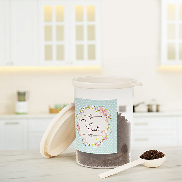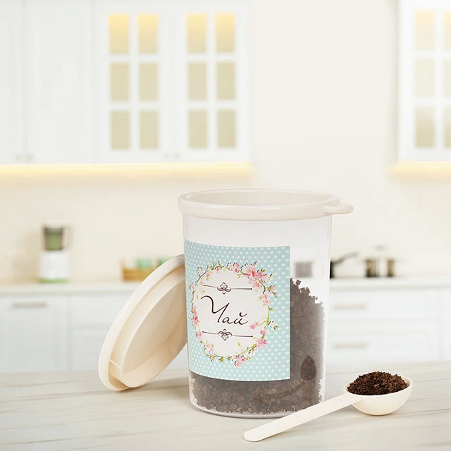 Изделие предназначено для хранения различных сыпучих продуктов: чая, соли, сахара, кофе. Прозрачность ёмкости позволяет видеть содержимое, а тематическая наклейка на ней - соблюдать порядок размещения продуктов на кухне. Крышка плотно закрывает банку и надежно защищает продукты от влаги и мусора. На специальном ободке крепится мерная ложка для удобства использования. Изделие изготовлено из качественного пластика, безопасного для здоровья человека.