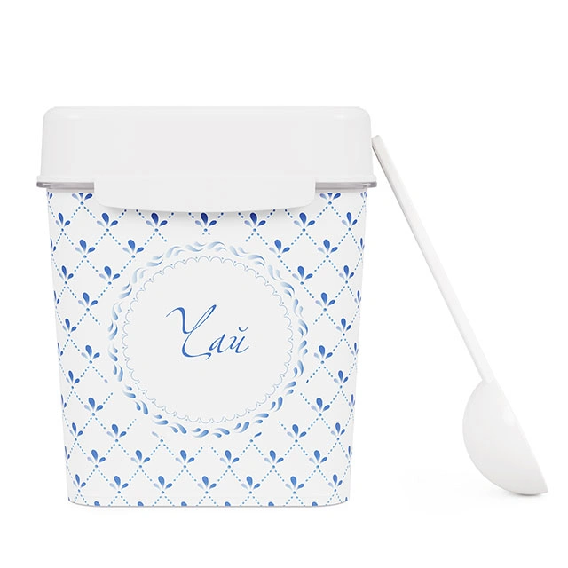 Квадратная ёмкость с откидной крышкой предназначена для хранения наиболее востребованных сыпучих продуктов: чая, сахара и соли. Яркий рисунок нанесен на изделие при помощи технологии IML. Он не стирается и не повреждается в процессе эксплуатации. Декор дарит особый колорит изделию и создает определенную стилистику кухни. Тематическая надпись позволяет соблюдать порядок размещения продуктов на кухне. В комплект входит мерная ложка для удобства использования. Изделие изготовлено из качественного пластика, безопасного для здоровья человека.