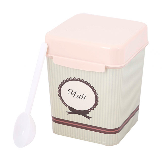 Квадратная ёмкость с откидной крышкой предназначена для хранения наиболее востребованных сыпучих продуктов: чая, сахара и соли. Яркий рисунок нанесен на изделие при помощи технологии IML. Он не стирается и не повреждается в процессе эксплуатации. Декор дарит особый колорит изделию и создает определенную стилистику кухни. Тематическая надпись позволяет соблюдать порядок размещения продуктов на кухне. В комплект входит мерная ложка для удобства использования. Изделие изготовлено из качественного пластика, безопасного для здоровья человека.