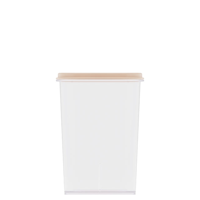 В этой ёмкости удобно хранить различные сыпучие продукты: крупы, макароны, сухие завтраки, орехи, муку, какао и многое другое. Под разные нужды в серии имеются ёмкости разных объёмов (1л, 1,5л, 2л, 3л). Прозрачность корпуса дает возможность видеть содержимое, а крышка защищает его от влаги и вредоносных жучков. Специальная форма крышки и дна корпуса позволяет ставить ёмкости друг на друга, предотвращая соскальзывание, тем самым экономя место на полке кухонного шкафа. Благодаря прямоугольной форме и небольшой ширине ёмкости удобно брать одной рукой.