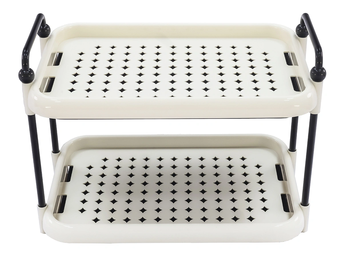 Этажерка универсальная на ножках с поддоном, прямоугольная с ручками, 2 яруса, 37х26х28 см, Plover