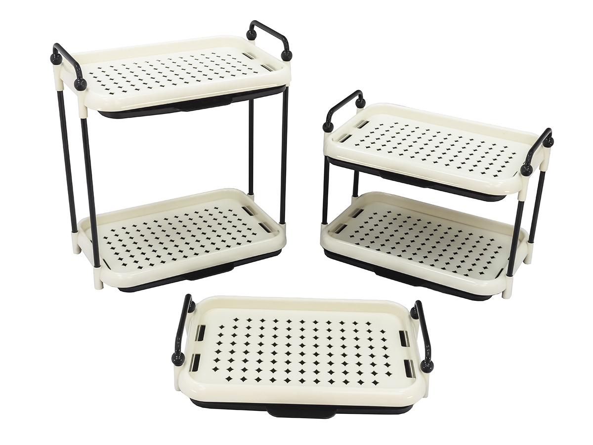 Он заслуженно пользуется большой популярностью, ведь изделие способно гармонично вписаться в интерьер любой комнаты. Такой органайзер выполняет множество функций, он может использоваться как поднос, может быть самостоятельной подставкой на столе или добавить дополнительный уровень полок в шкафу для кухонной утвари. Данный органайзер имеет преимущество в виде сливного поддона под секцией, таким образом он может выступать в роли сушилки для посуды.