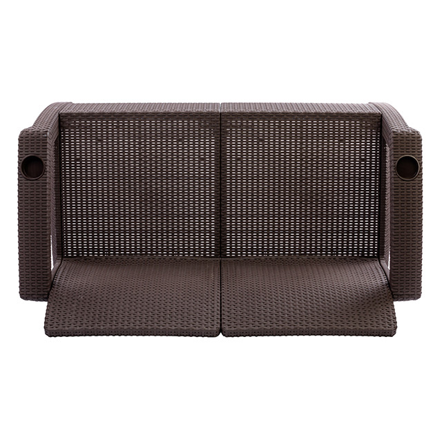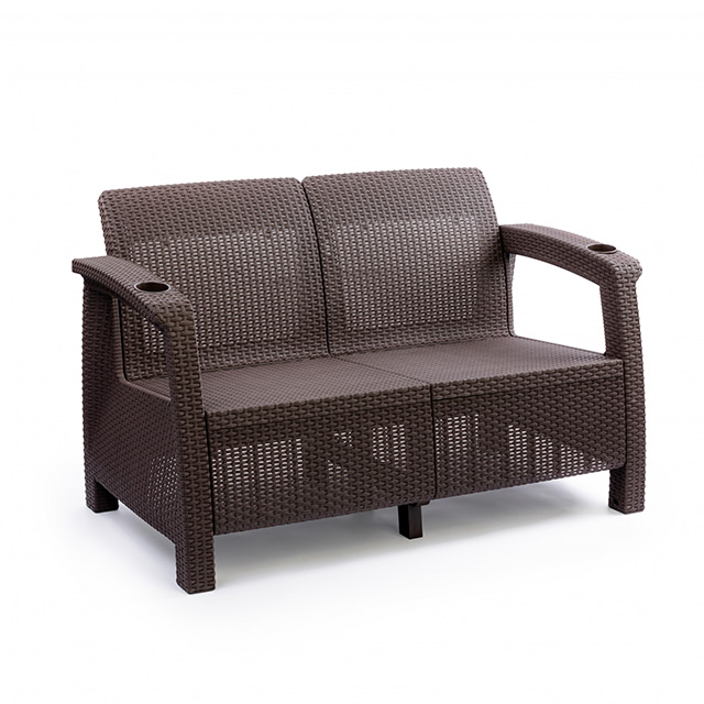 Диван рассчитан на два посадочных места, допустимая нагрузка на каждое 106 кг (всего 212 кг). На подлокотниках расположены отверстия для напитков. Диван предназначен для использования в доме, на террасе, садовом участке, в офисе, кафе. Мебель, стилизованная под ротанг, выглядит не хуже натуральной, а стоит существенно меньше. Диван сделан из прочного и качественного нетоксичного полимера, устойчивого к воздействию солнечных лучей, влаге и перепадам температур. При правильной эксплуатации изделие прослужит долгие годы.