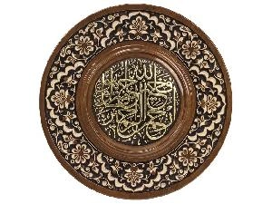 Деревянное панно ручной работы с сурой из Корана.Выполнено из благородного сорта грецкого ореха. Древисину сушат от 5 до 6 лет при определенных условиях. Декорировано золочением. Диаметр панно - 25 см. Авторская работа узбекского мастера-резчика по дереву Шухрата Ахмедназарова.