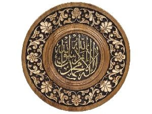 Деревянное панно ручной работы с сурой из Корана. Выполнено из благородного сорта грецкого ореха. Древисину сушат от 5 до 6 лет при определенных условиях. Декорировано золочением. Диаметр панно - 20 см. Авторская работа узбекского мастера-резчика по дереву Шухрата Ахмедназарова.