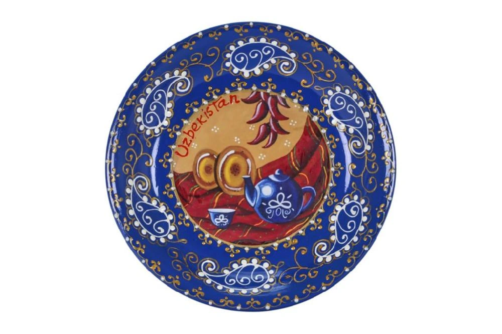 На тарелках с ручной росписью изображены достопримечательности Узбекистана и национальные орнаменты. Такая тарелка украсит интерьер квартиры, дома или ресторана и станет отличным подарком.