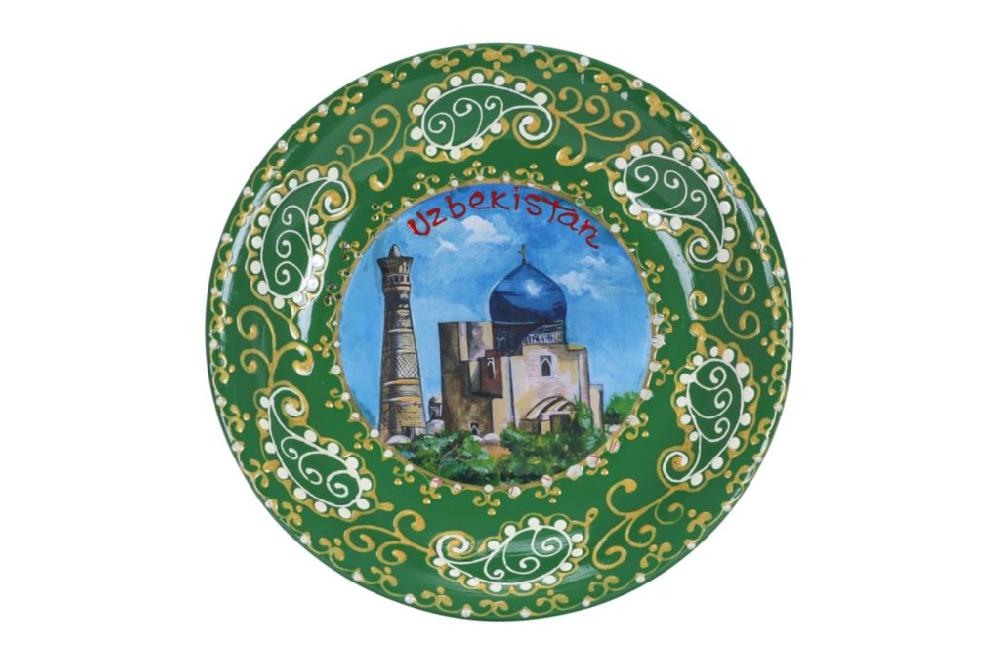 На тарелках с ручной росписью изображены достопримечательности Узбекистана и национальные орнаменты. Такая тарелка украсит интерьер квартиры, дома или ресторана и станет отличным подарком.